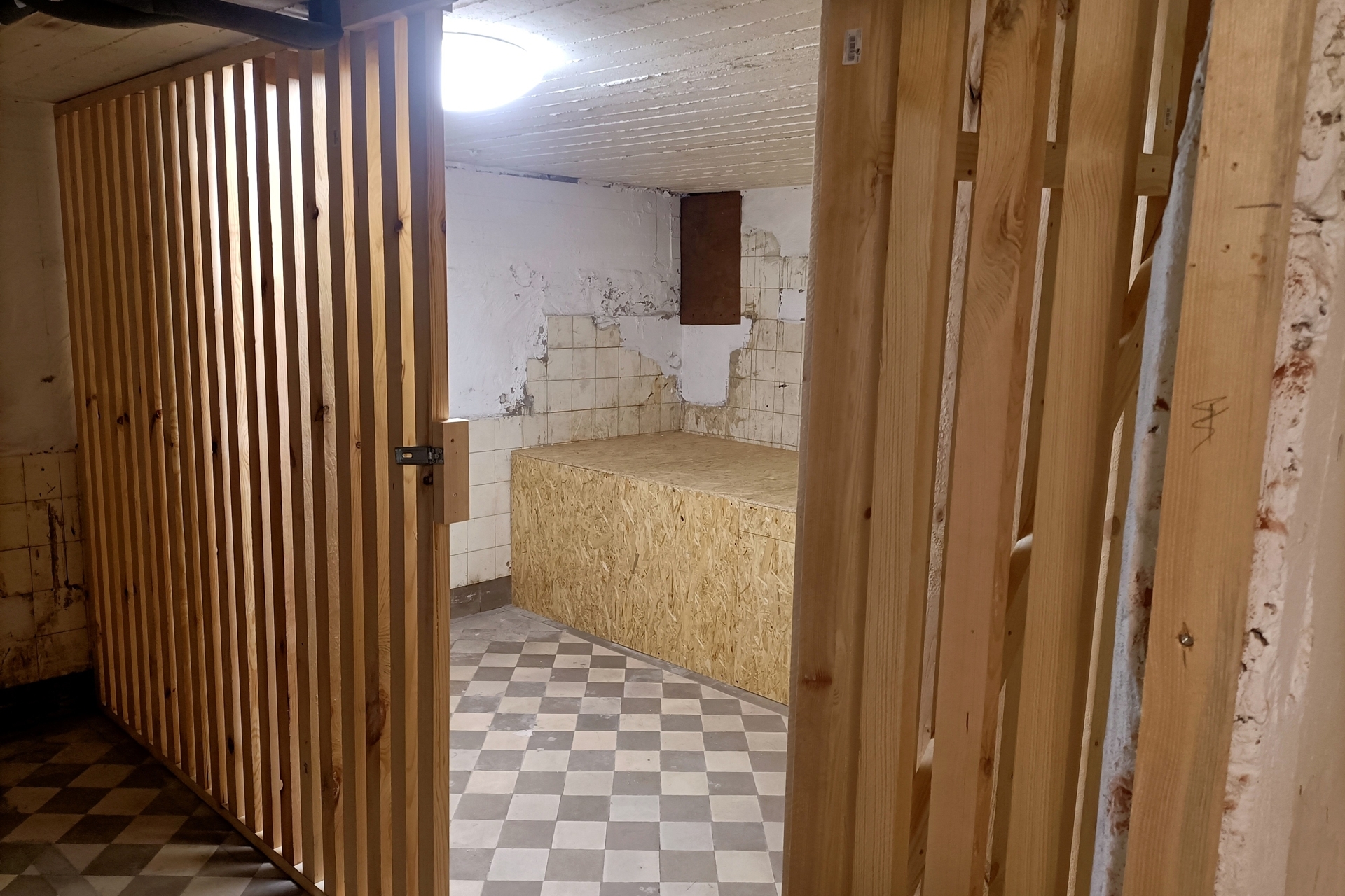 Lagerfläche/Raum, verputzt und gestrichen, teilweise gefliest ca. 9 m² = monatliche Miete: 65 Euro