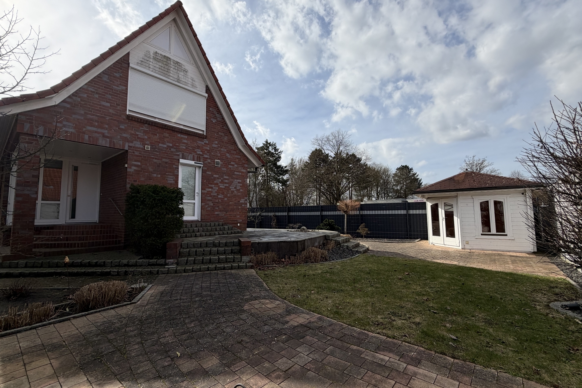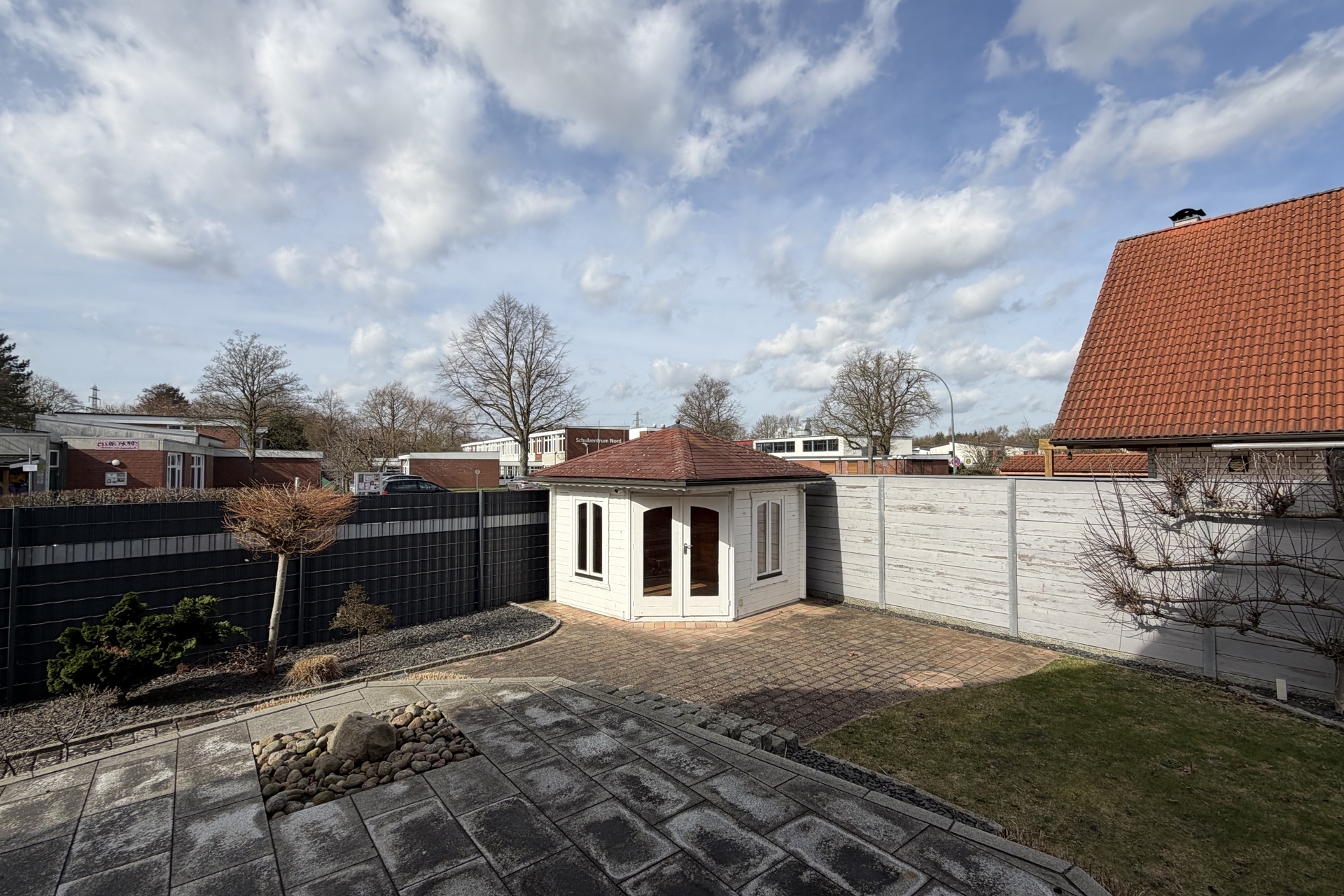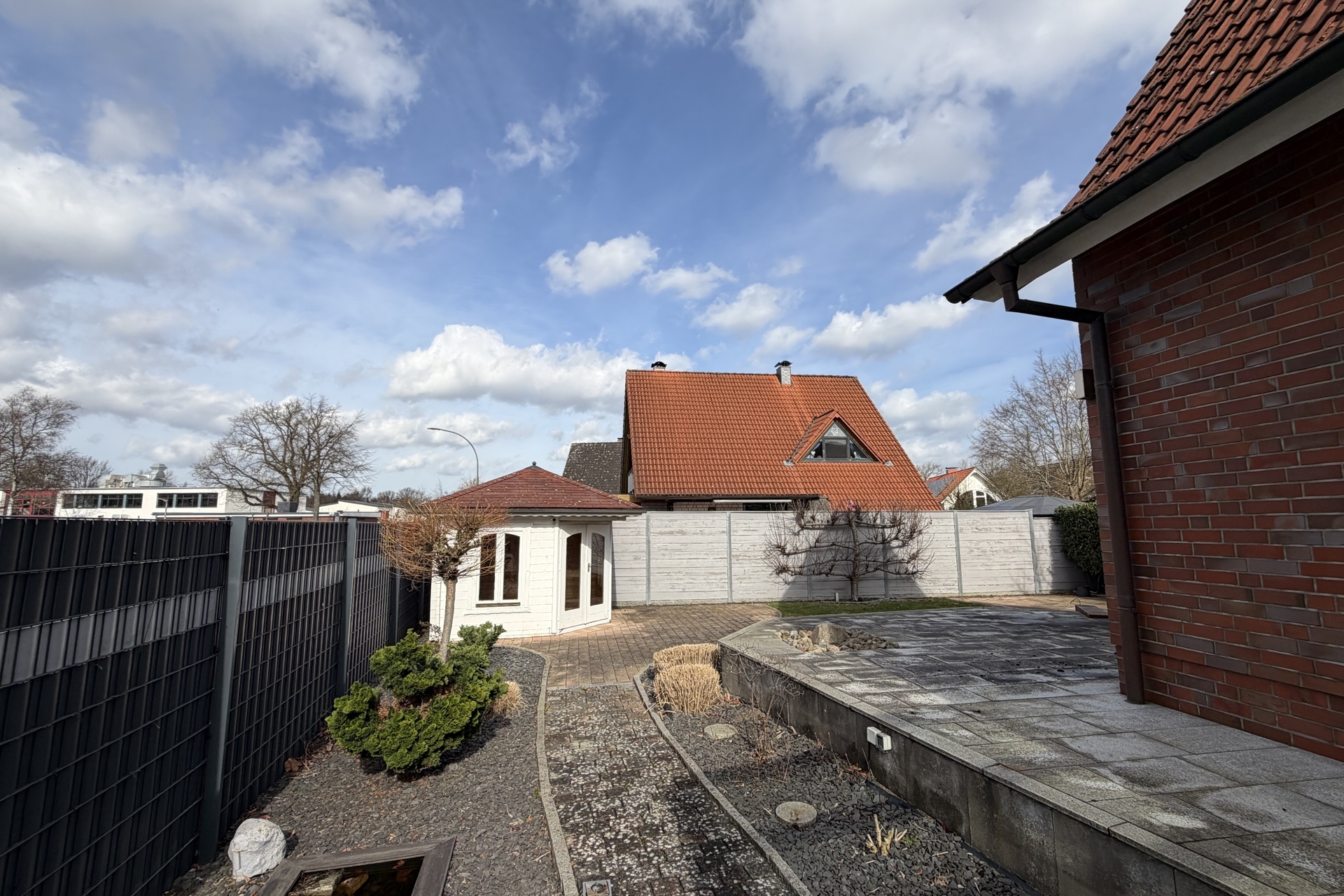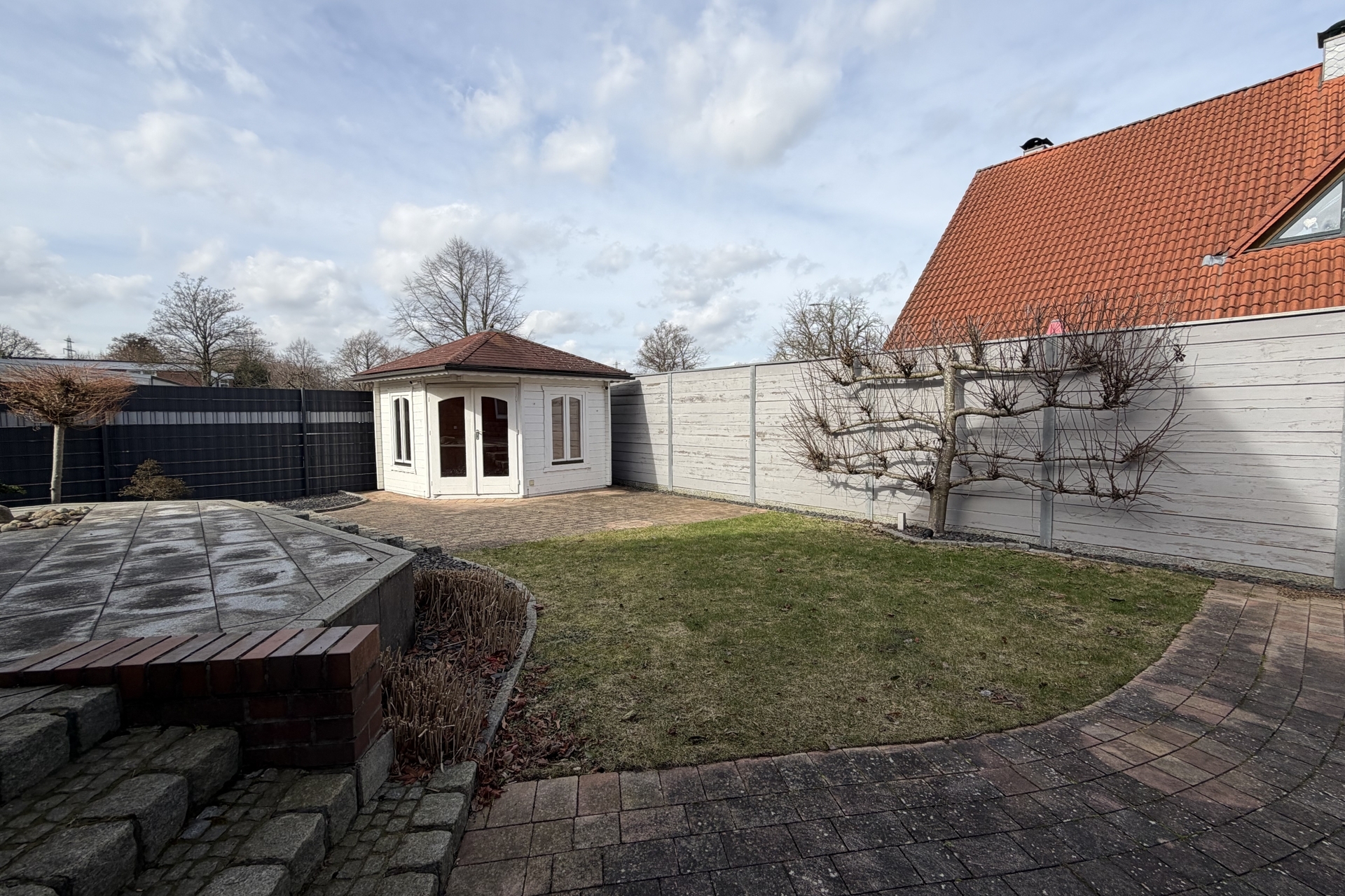 Der Garten ist geschmackvoll und mit viel Liebe zum Detail angelegt. Mehrere, differenziert gestaltete Terrassenbereiche bieten abwechslungsreiche Aufenthaltsmöglichkeiten und schaffen eine harmonische Verbindung zwischen Innen- und Außenraum.