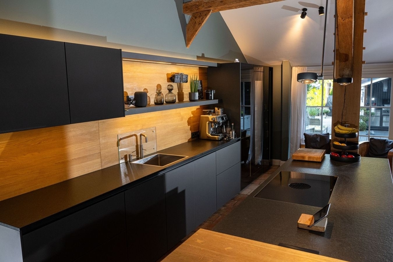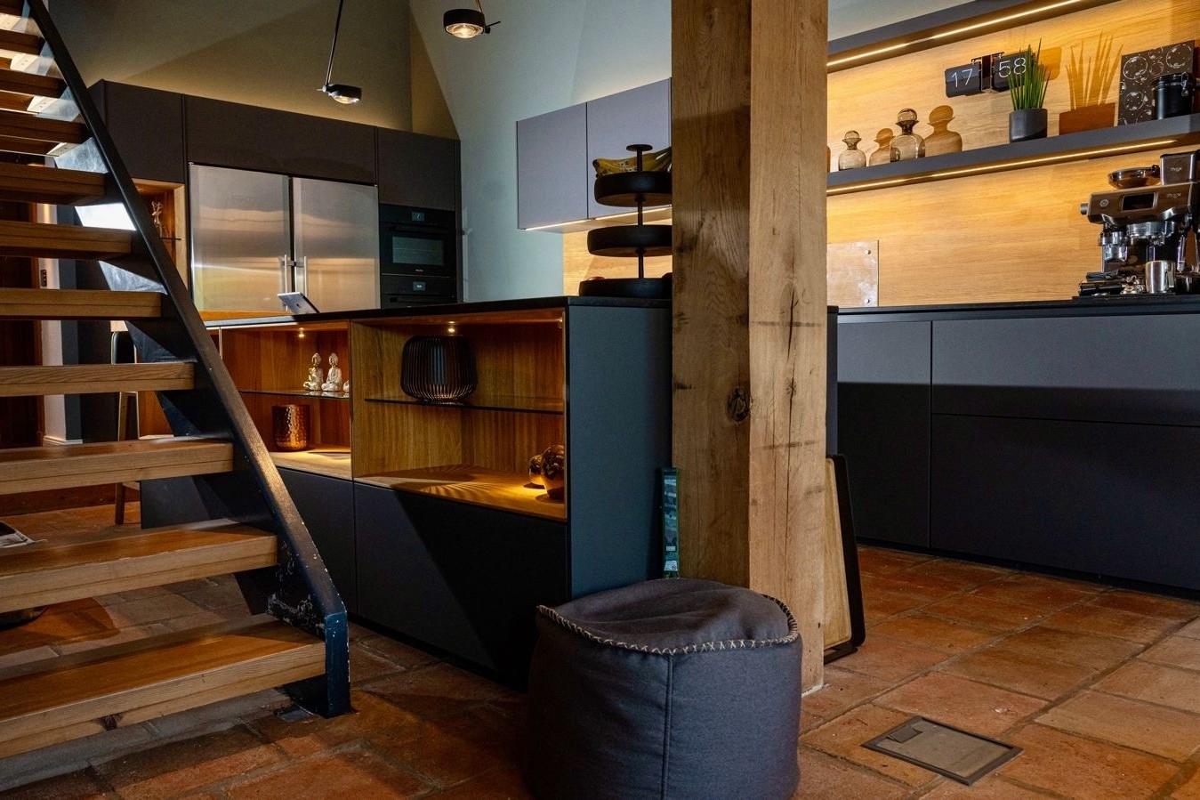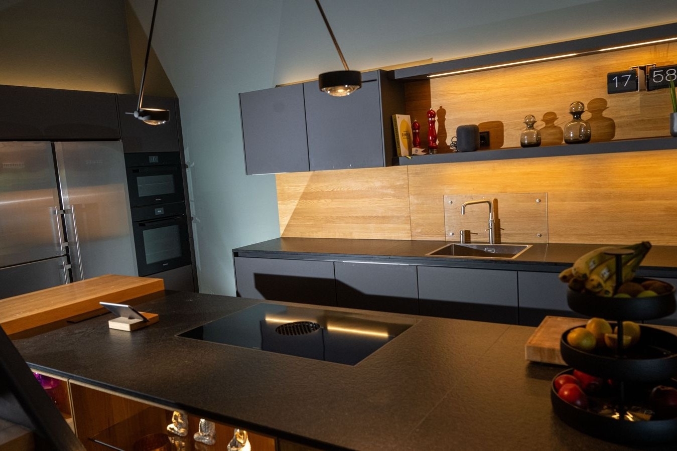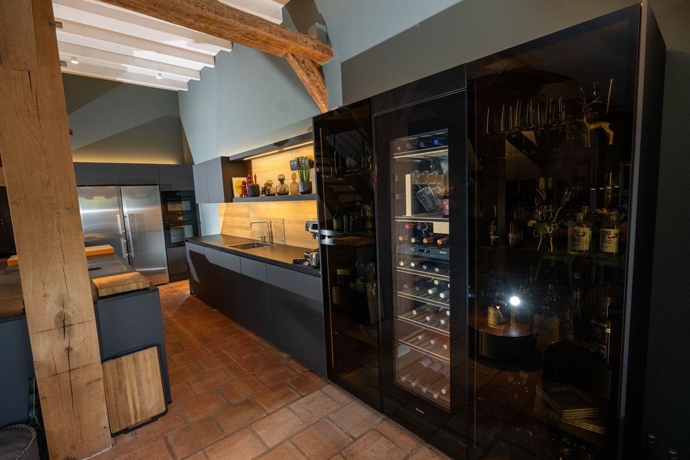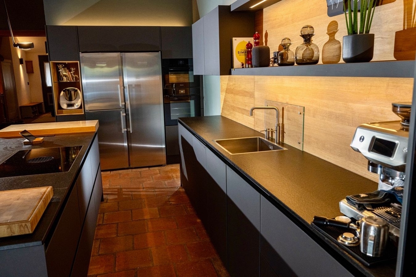 – Ausstattung: Occhio-Beleuchtung, Backofen, Dampfgarer, Bora-Kochfeld, Quooker, Thermomix, Miele-Weinkühlschrank