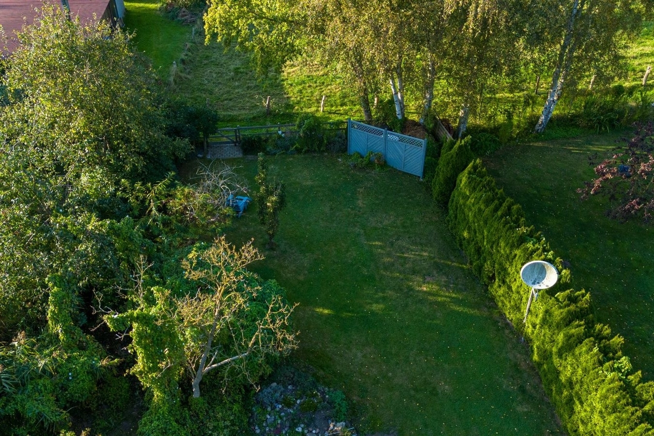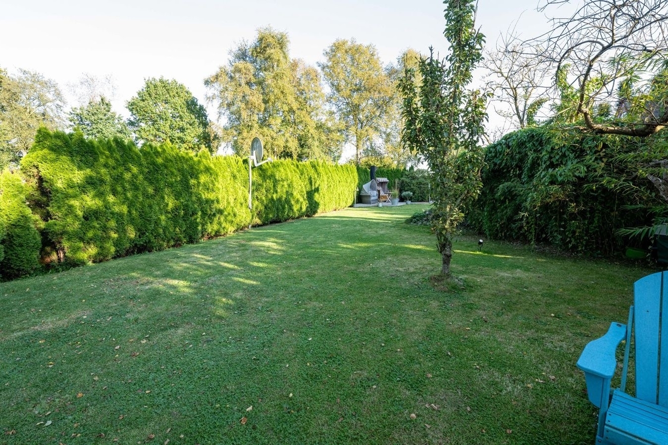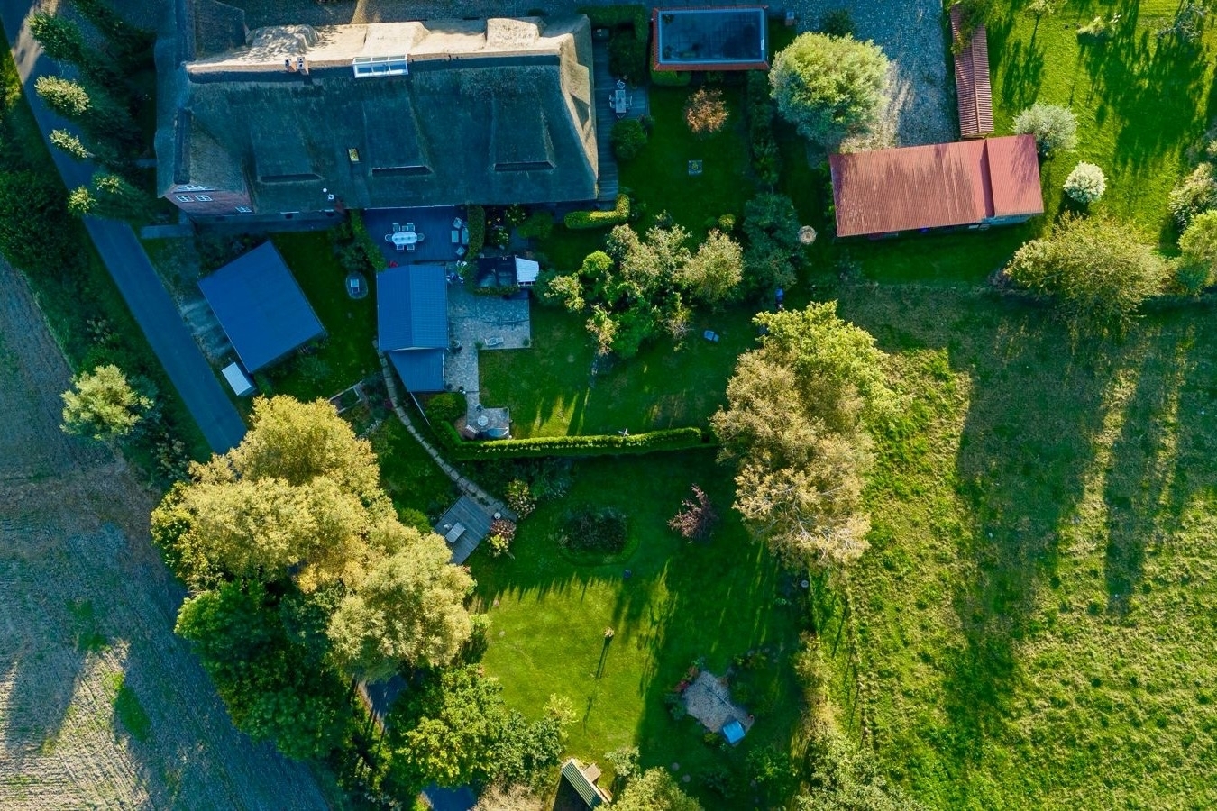 Auch der Außenbereich lässt keine Wünsche offen: Ein ca. 700 m² großer, liebevoll gestalteter Garten mit unverbaubtem Blick über die umliegenden Wiesen und Felder eröffnet Ihnen ein Höchstmaß an Privatsphäre und Naturverbundenheit. Die überdachte Außenküche von Napoleon, ein großzügiger Terrassenbereich sowie eine stimmungsvolle Gartenbeleuchtung laden zu geselligen Abenden und entspannten Stunden im Freien ein.