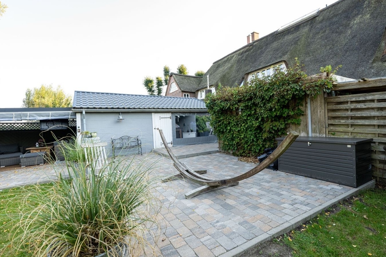 Der angebotene Hausteil unter Reet präsentiert sich heute als stilvoller Rückzugsort mit außergewöhnlichem Wohnambiente und einer beeindruckenden Verbindung aus Historie und Moderne. Im Zuge einer aufwendigen Umgestaltung ab dem Jahr 2000 sowie einer umfassenden Renovierung und Sanierung zwischen Sommer 2021 und 2022 wurde dieses besondere Domizil mit viel Feingefühl und einem ausgeprägten Sinn für Ästhetik neu interpretiert.