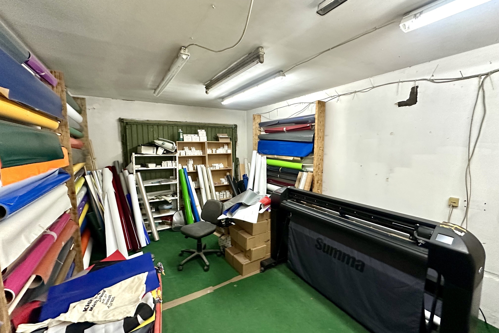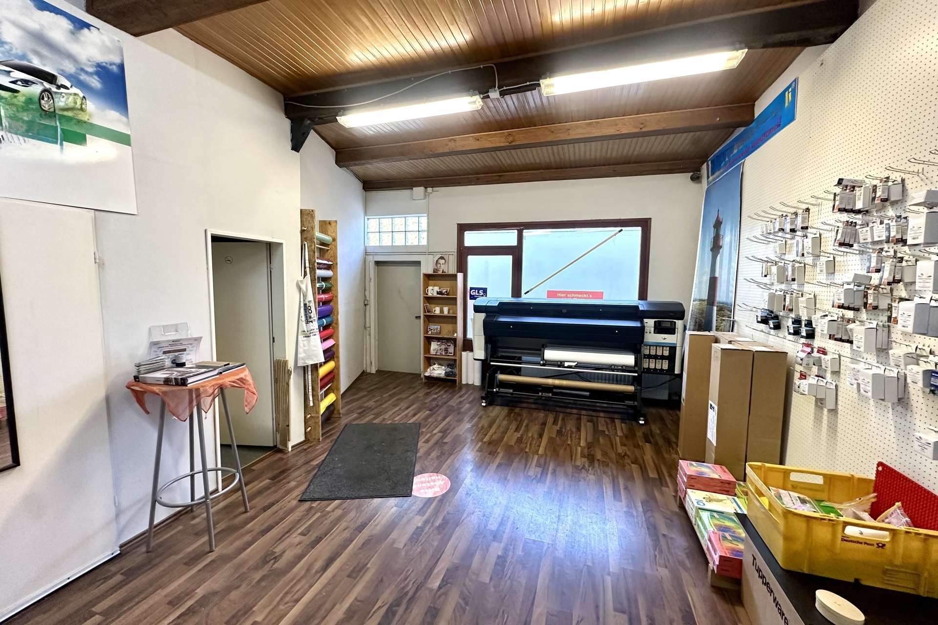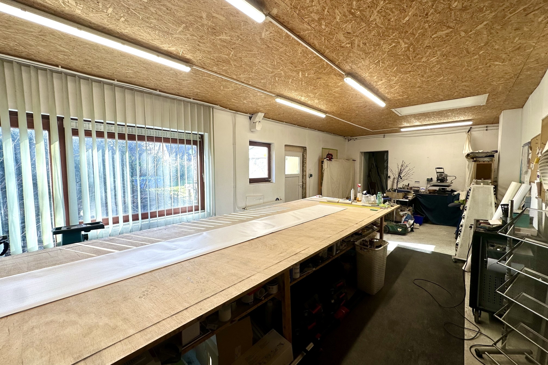 Ein besonderes Highlight ist die großzügige, separat nutzbare Gewerbeeinheit (ca. 33 m²), die sich ideal für ein stilles Gewerbe oder kreative Projekte eignet. Herzstück ist die ca. 108 m² große, gedämmte Halle (Ausbau 2017) mit beeindruckender Deckenhöhe von bis zu ca. 4,50 m sowie einem integrierten Ofen. Ein 4 m hohes Rolltor ermöglicht komfortable Zufahrtsmöglichkeiten – perfekt für Handwerker und Selbständige, als Lager oder für individuelle Nutzungskonzepte. Ergänzt wird dieser Bereich durch einen weiteren Gewerberaum, ein Büro (Glasfaseranschluss vorhanden) sowie eine Garage. Zusätzlich steht über der Halle ein großzügiger noch nicht ausgebauter Bodenraum zur Verfügung.
