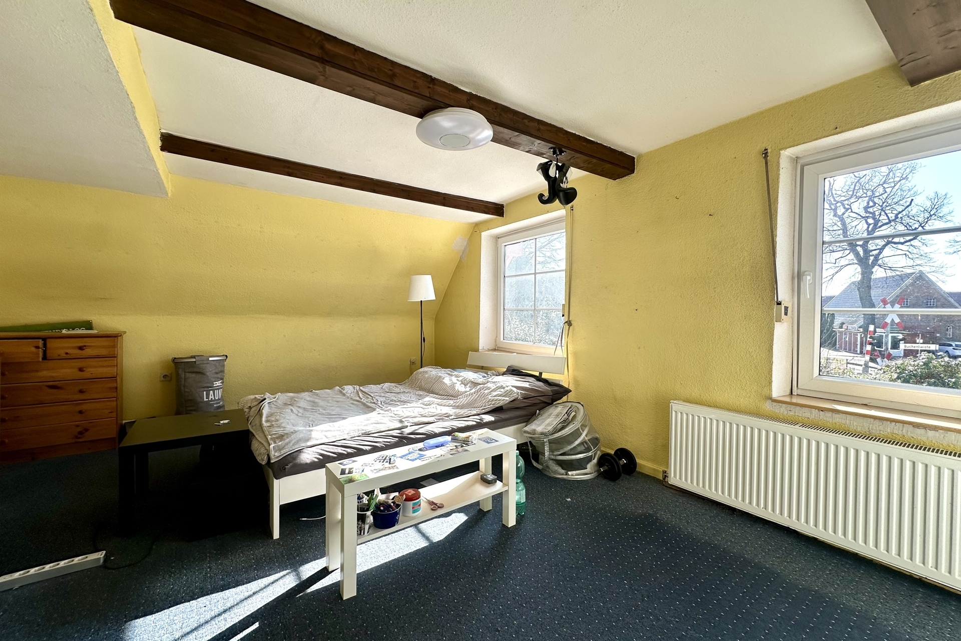Das Dachgeschoss eröffnet interessante Perspektiven für zukünftige Gestaltungsideen. Die dort vorhandenen Flächen bieten attraktive Ausbaureserven und vielseitige Nutzungsmöglichkeiten. Aktuell sind hier bereits Räume eingerichtet, die flexibel genutzt werden können. Ein separat zugänglicher Raum im Spitzboden schafft zusätzliche Alternativen – ideal für Homeoffice, kreative Rückzugsorte oder Stauraum.