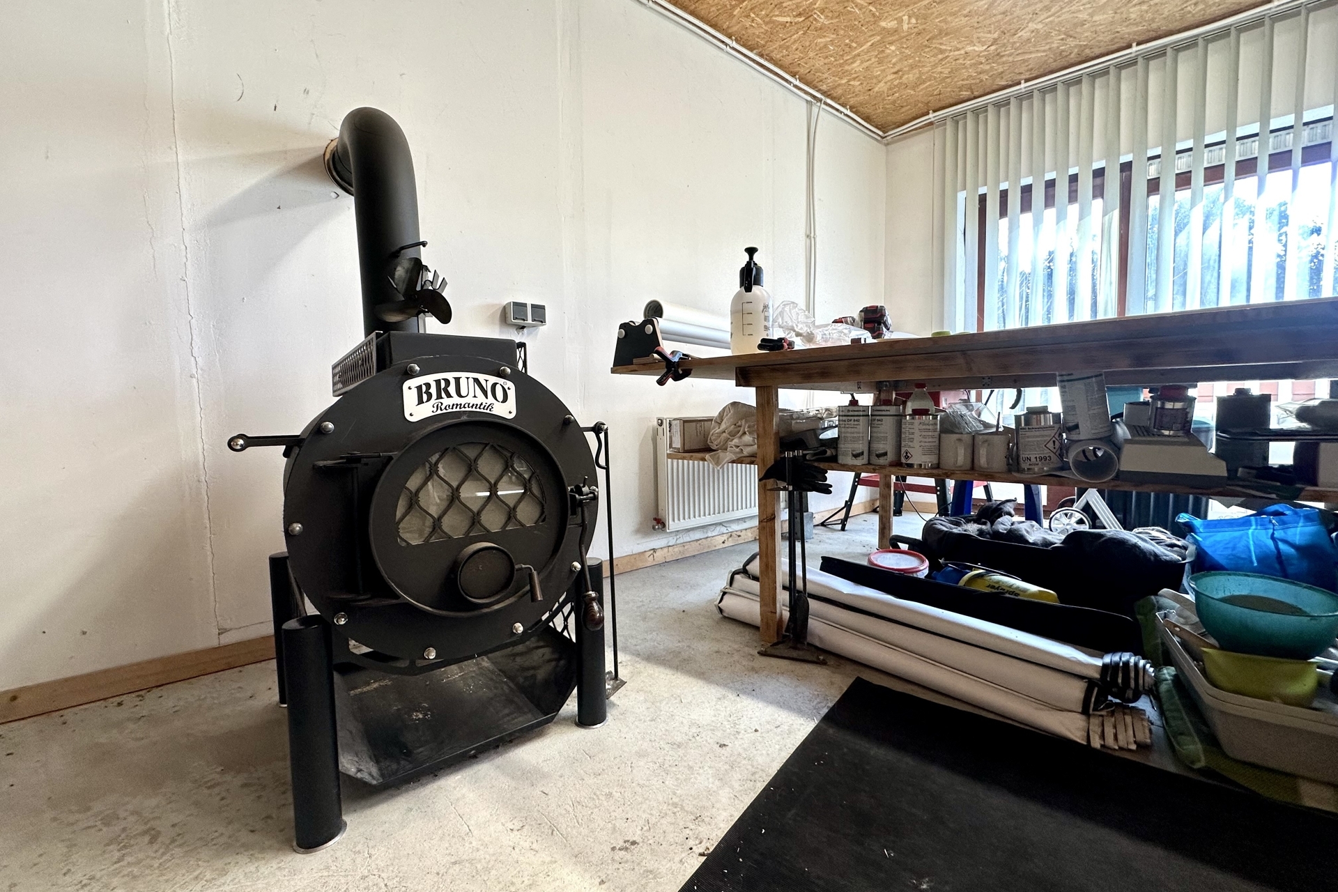 - gedämmte Halle ca. 108 m² mit Ofen (Ausbau 2017)