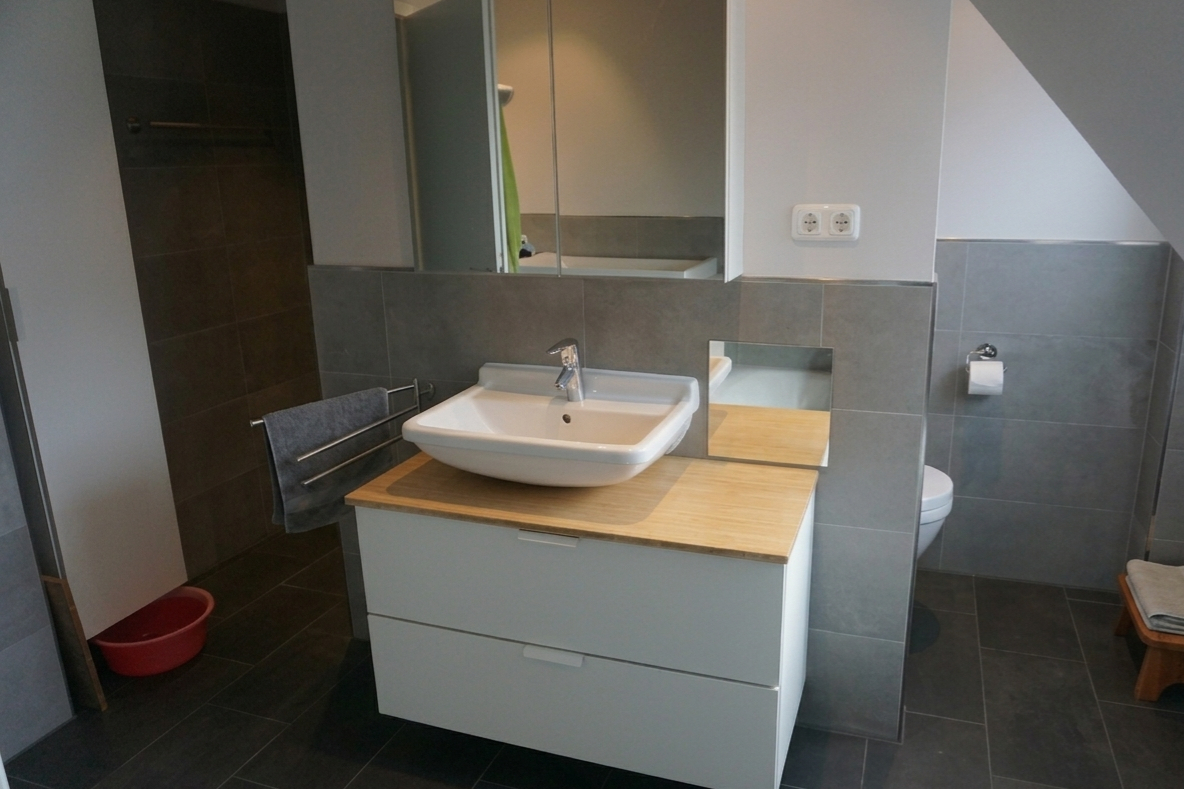 Im Obergeschoss stehen zwei gut geschnittene Schlafzimmer sowie ein modernes Vollbad (Badewanne und Dusche) zur Verfügung. Ein ausgebauter Dachboden bietet zusätzlichen Raum, der flexibel genutzt werden kann – beispielsweise als Arbeits-, Hobby- oder Abstellfläche oder auch weiteres Schlafzimmer.