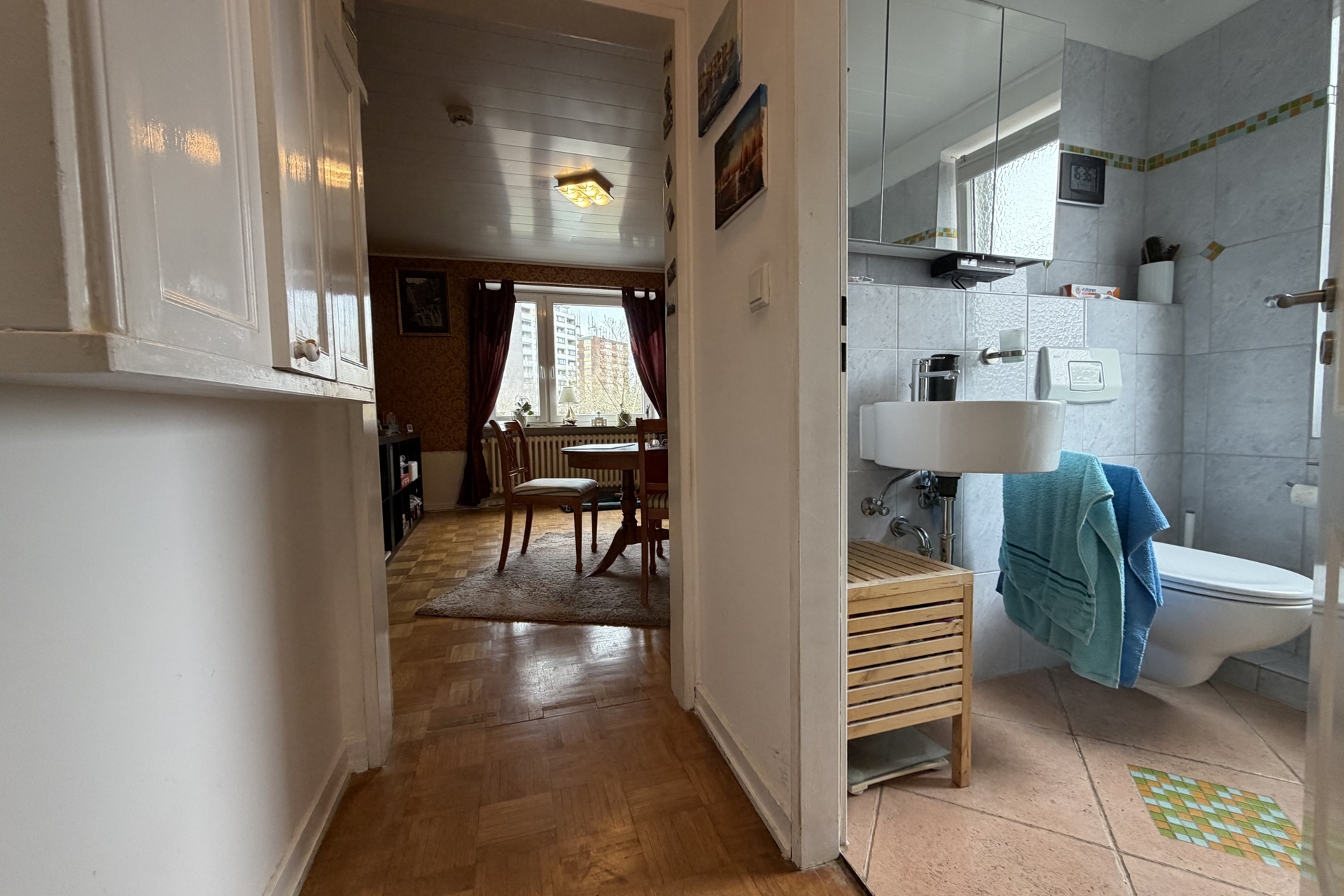 Die angebotene 3-Zimmer-Eigentumswohnung befindet sich im 2. Obergeschoss einer gepflegten Wohnanlage mit insgesamt 98 Einheiten, die im Jahr 1970 errichtet wurde. Die Wohnung verfügt über eine Wohnfläche von ca. 71 m², die sich auf ein großzügiges Wohnzimmer, ein Schlafzimmer, ein weiteres Zimmer sowie die zugehörigen Nebenräume verteilt. Ergänzend steht im Schlafzimmer ein kleiner begehbarer Schrank zur Verfügung, der zusätzlichen Stauraum bietet.
